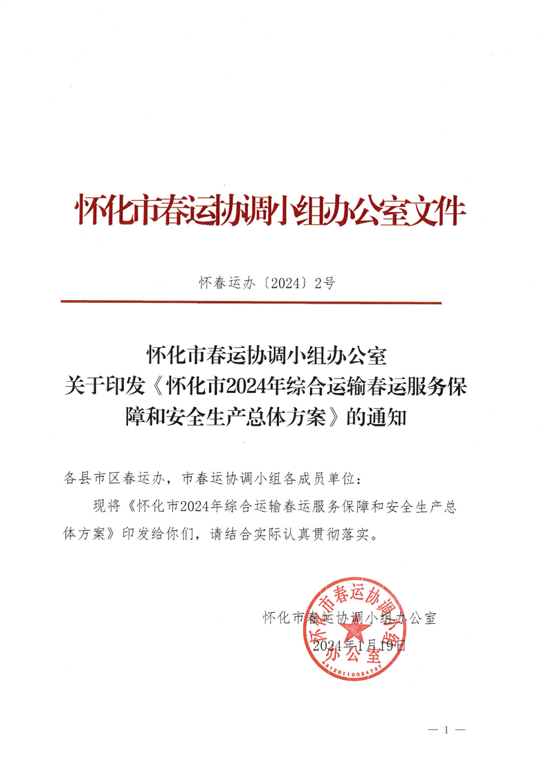 懷化市春運辦關(guān)于印發(fā)《懷化市2024年綜合運輸春運服務(wù)保障和安全生產(chǎn)總體方案》的通知