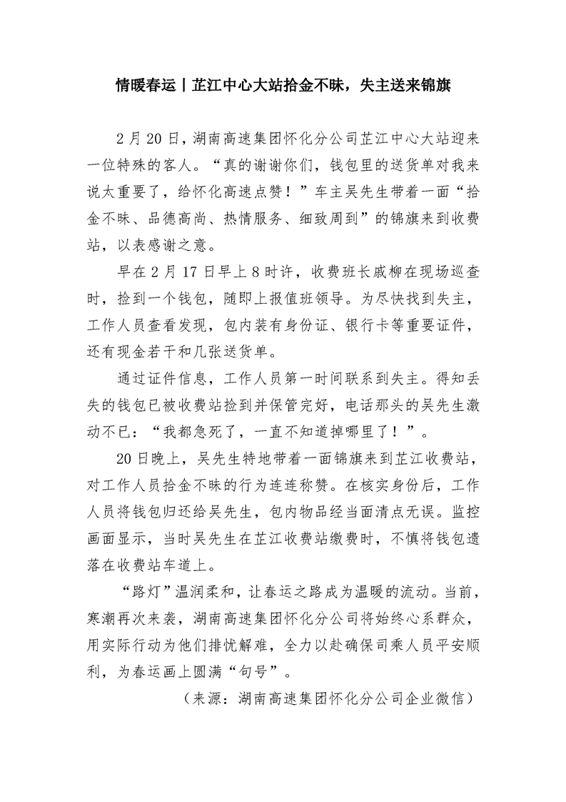 2024年懷化分公司春運專報-第28期