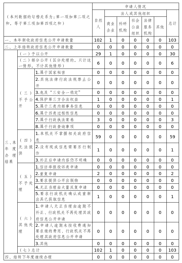 2025年,本機關(guān)嚴(yán)格依照《條例》開展工作,堅守“公開為常態(tài)、不公開為例外”原則,規(guī)范依申請公開全流程管理。全年共接收政府信息公開申請103件,其中自然人申請102件、法人或其他組織申請1件,申請內(nèi)容集中于物業(yè)組建信息、征拆項目信息、居委會組建資料等民生領(lǐng)域;辦理結(jié)果中予以公開29件、部分公開6件、不予公開4件、無法提供60件、不予處理3件,所有申請均在法定期限內(nèi)規(guī)范答復(fù),時效性和規(guī)范性顯著提升。行政復(fù)議與行政訴訟方面,全年因政府信息公開工作被申請行政復(fù)議42件,經(jīng)審理維持4件、糾正2件、申請人撤回31件,未審結(jié)5件,針對復(fù)議糾正問題已及時整改;發(fā)生相關(guān)行政訴訟案件3件,含未經(jīng)復(fù)議直接起訴1件、復(fù)議后起訴2件,所有案件均依法應(yīng)訴。下一步,本機關(guān)將根據(jù)行政復(fù)議和行政訴訟暴露的問題,進(jìn)一步優(yōu)化政府信息公開申請辦理流程、細(xì)化公開標(biāo)準(zhǔn),持續(xù)提升政府信息公開工作規(guī)范化水平。
