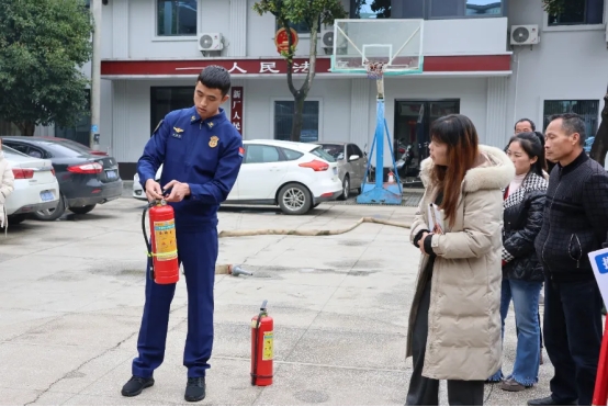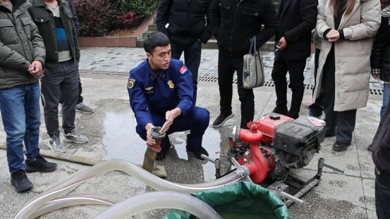 理論授課結(jié)束后,培訓(xùn)人員現(xiàn)場展示農(nóng)村微型消防站手抬機(jī)動泵、干粉滅火器等器材裝備,細(xì)致講解操作規(guī)范與日常維護(hù)要點(diǎn),手把手教學(xué)滅火器“提拔握壓”使用技巧。針對部分村莊水源匱乏的問題,還現(xiàn)場演示利用手抬機(jī)動泵從池塘、水井取水的方法,讓參訓(xùn)干部看得懂、學(xué)得會、用得上。