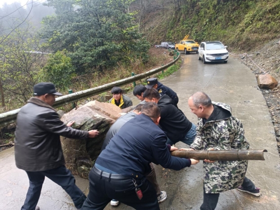 3月24日,通道雙江鎮(zhèn)綜合執(zhí)法大隊(duì)隊(duì)員與村干部在例行汛期巡查中,發(fā)現(xiàn)X178縣道傳素村古孟團(tuán)寨段,山體因強(qiáng)降雨發(fā)生落石,阻礙了車輛通行。發(fā)現(xiàn)險(xiǎn)情后,鎮(zhèn)、村立即啟動(dòng)應(yīng)急預(yù)案,迅速開展清理工作。經(jīng)過(guò)近半小時(shí)的努力,落石被全部清理完畢,道路恢復(fù)正常通行。