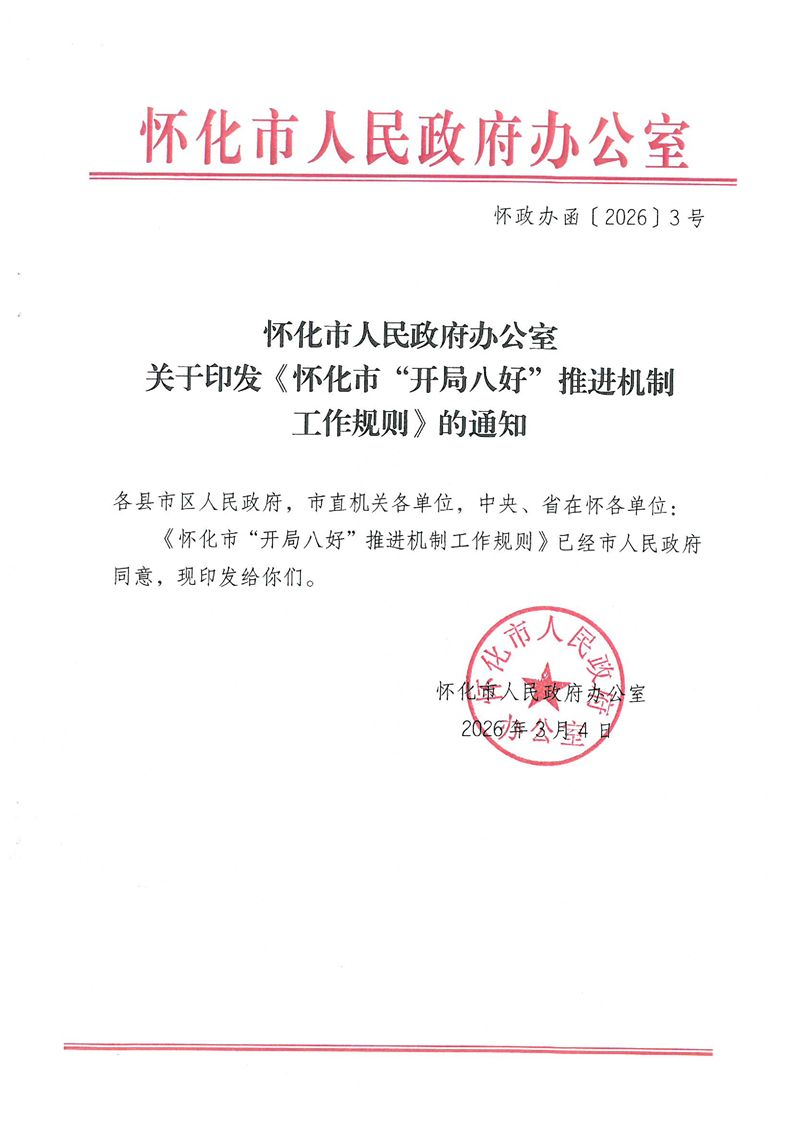 懷化市人民政府辦公室關(guān)于印發(fā)《懷化市“開局八好”推進(jìn)機(jī)制工作規(guī)則》的通知